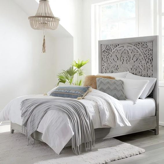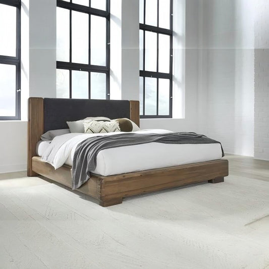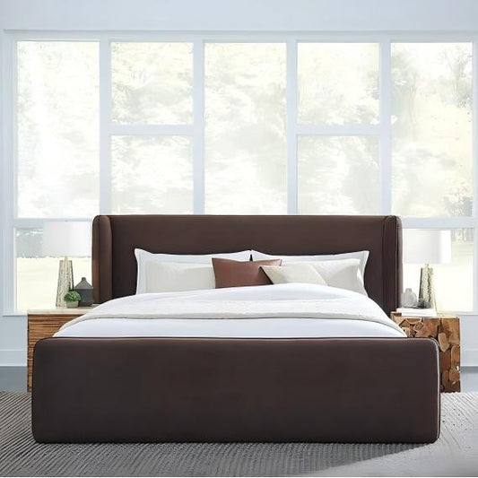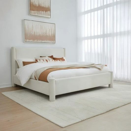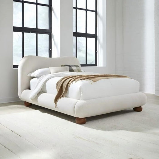 Afia Chenille Upholstered Wood Leg Platform Bed