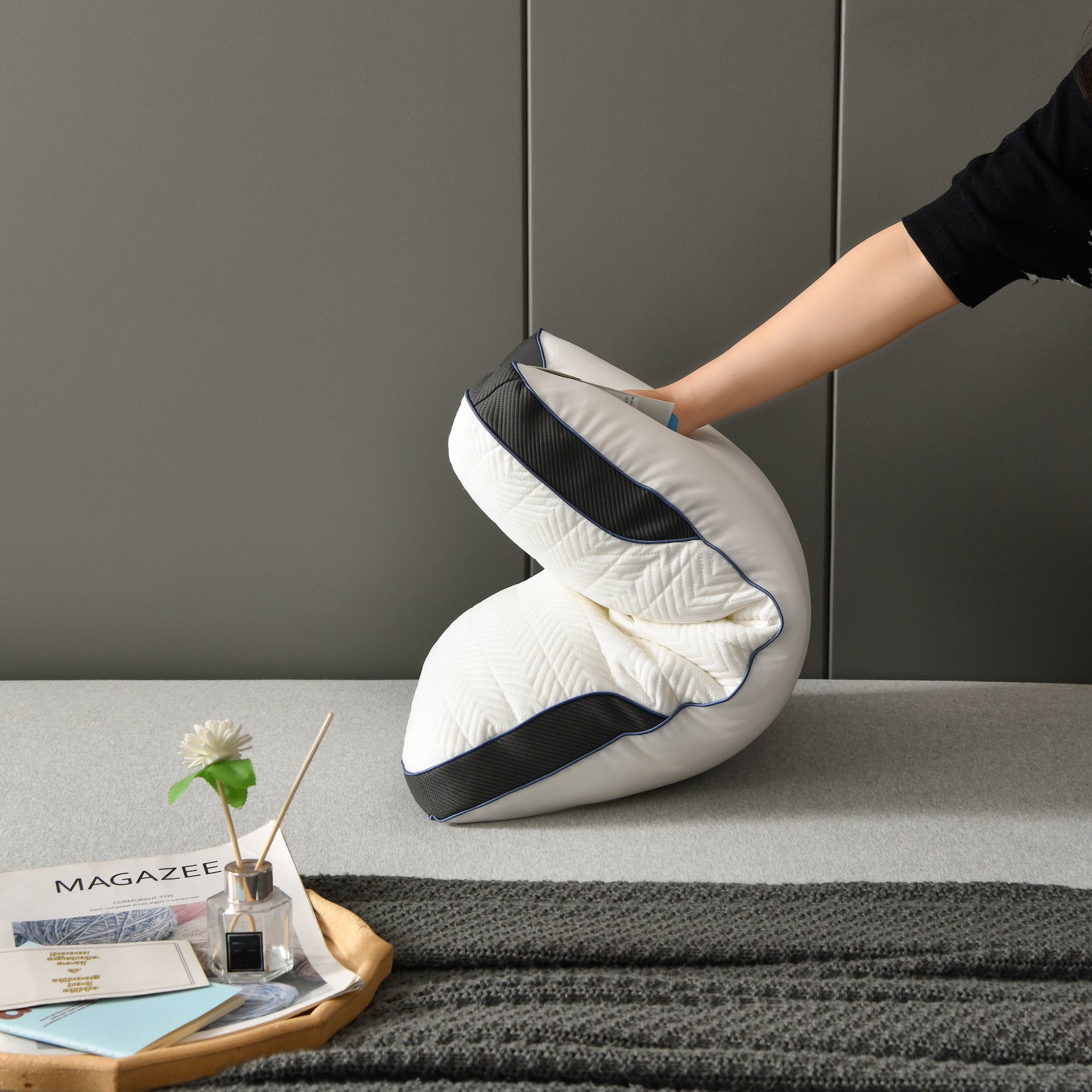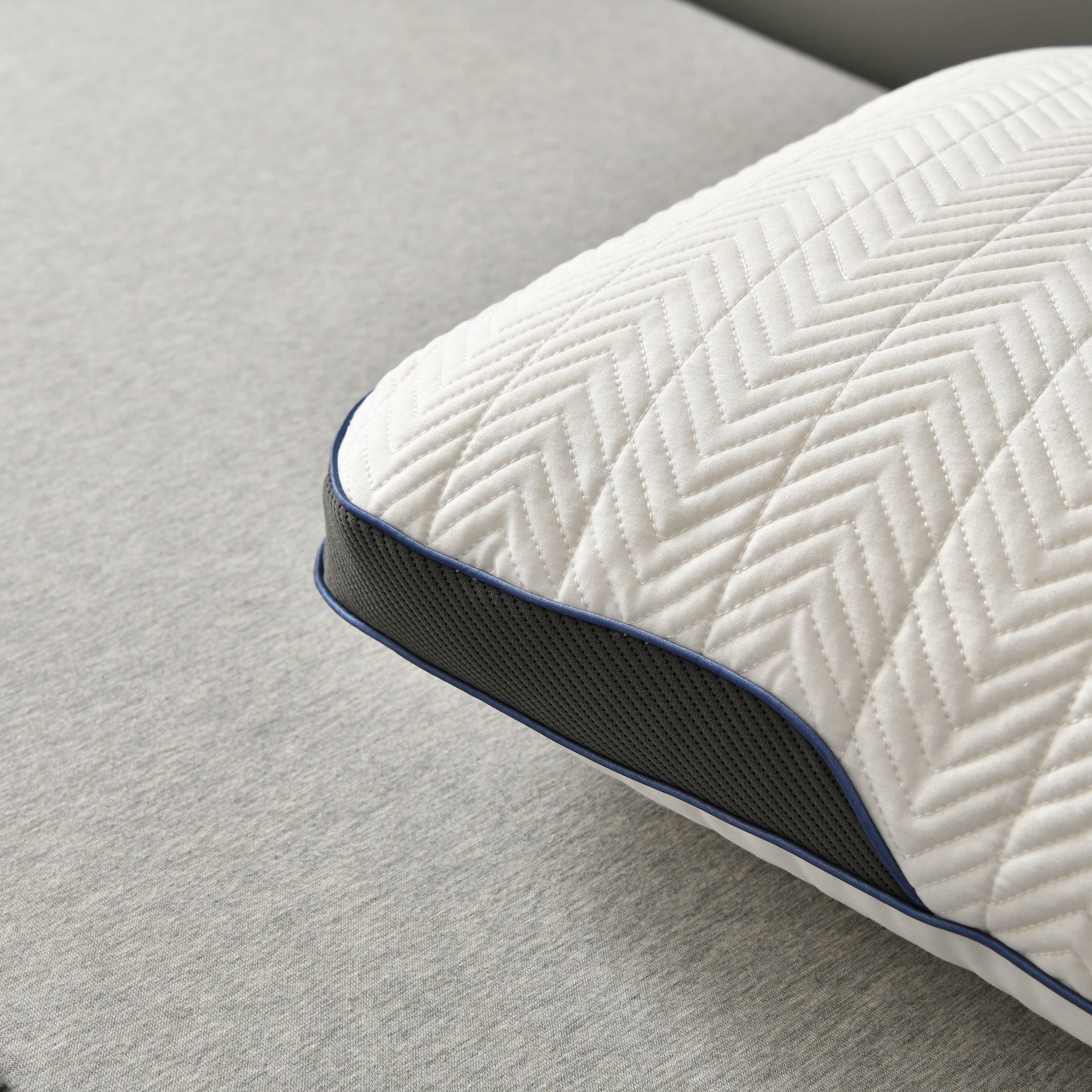 Sink into soft, enveloping comfort with this bread-loaf shaped pillow. Its plump and full structure gently contours to your head and neck, providing a "hugged" feeling that eases tension. The cover is a blend of cozy, antimicrobial Dralon® and breathable mesh panels, ensuring a clean and cool sleeping surface. Inside, a blend of soft polyester fiber and natural cassia seeds & black buckwheat hulls provides a unique combination of cushioned softness and supportive, calming benefits.