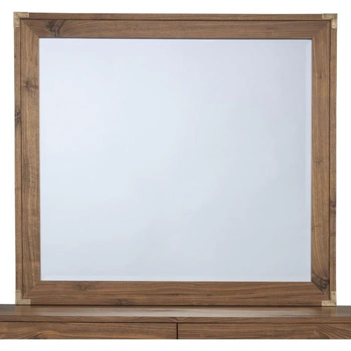 Beveled glass; keyhole brackets for wall mounting; dresser mounting hardware included