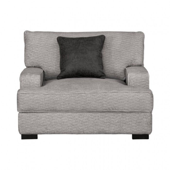 Add rich comfort to your living space with this handsome collection. Loose pillow backs and seat cushions are all trimmed with same-color welt that add a sense of refinement. The low arms and wide seating it offers creates an inviting and bold aesthetic. The monotone colors from the body fabric and the assorted patterns on the accent pillows work very will with contemporary spaces that go for the understated look.