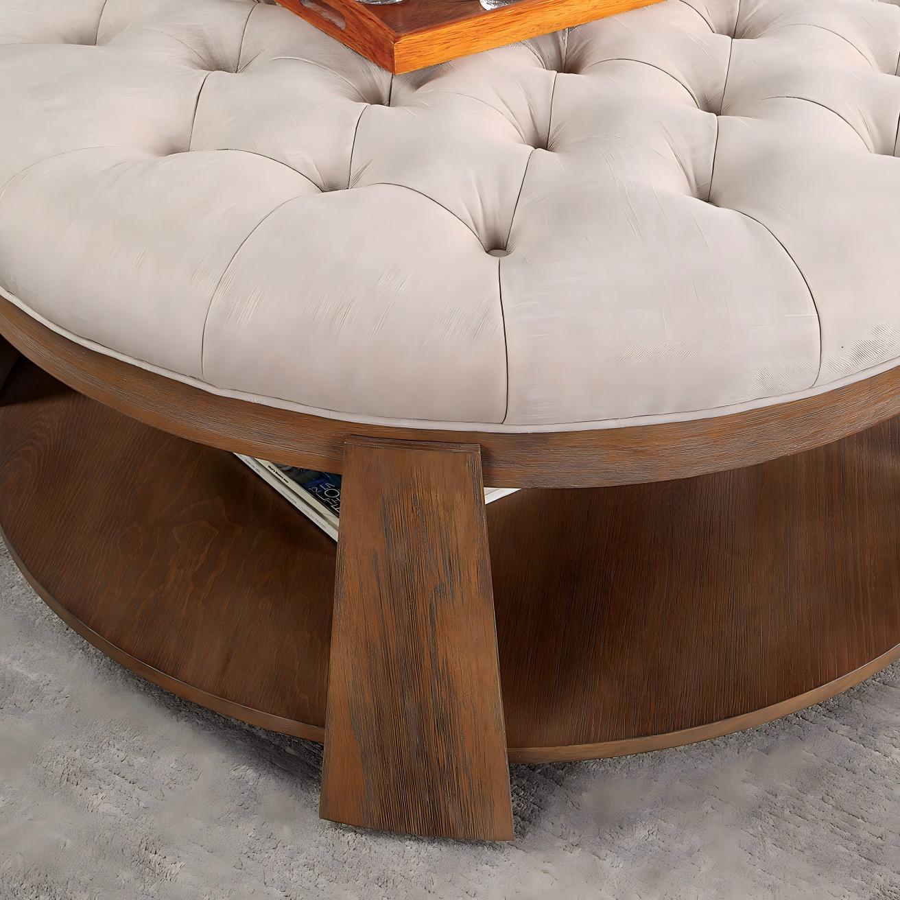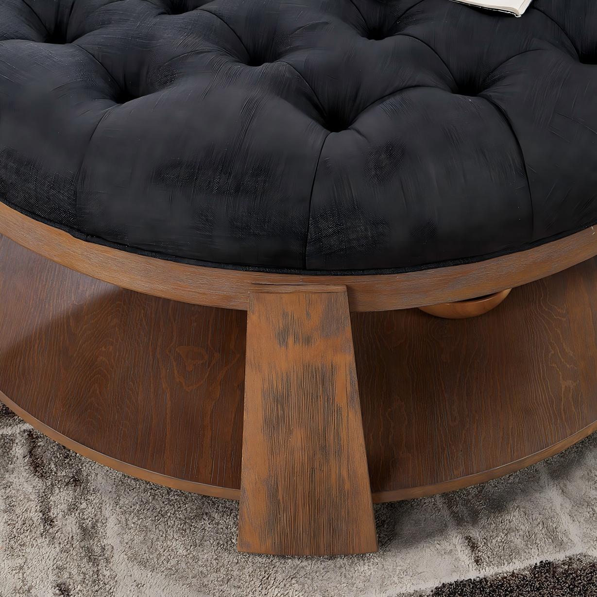 There's something to be said about this ottoman's classic elements. First off, the wire-brushed finish of the frame works well with the natural tone; it gives this piece an aged, rustic look. Meanwhile, the line-like fabric seat and the button-tufting comes with a contrasting softness that's much welcomed in any space.