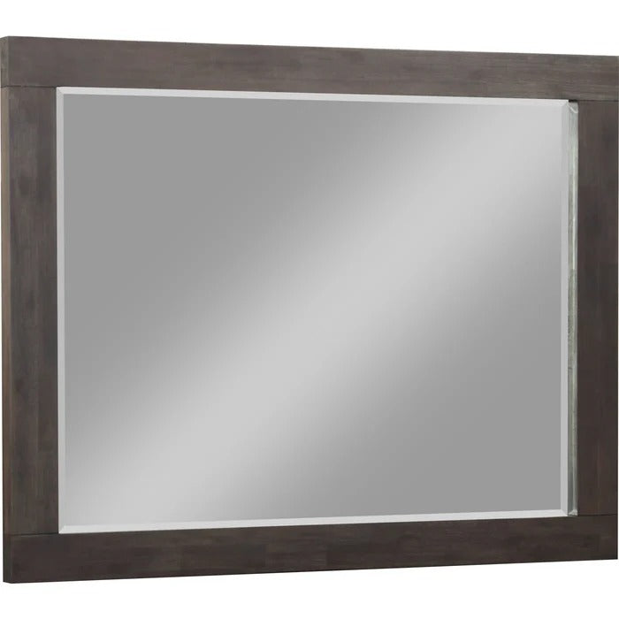 - Beveled glass mirror equipped with keyhole brackets for wall mounting