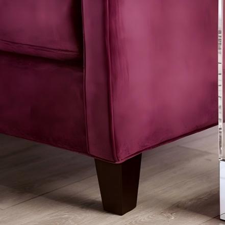 This fun and refreshingly modern design makes for a 'plum' of a sofa, thanks to its dynamic plum chenille fabric. American-made wood construction ensures the finest quality of sofa.