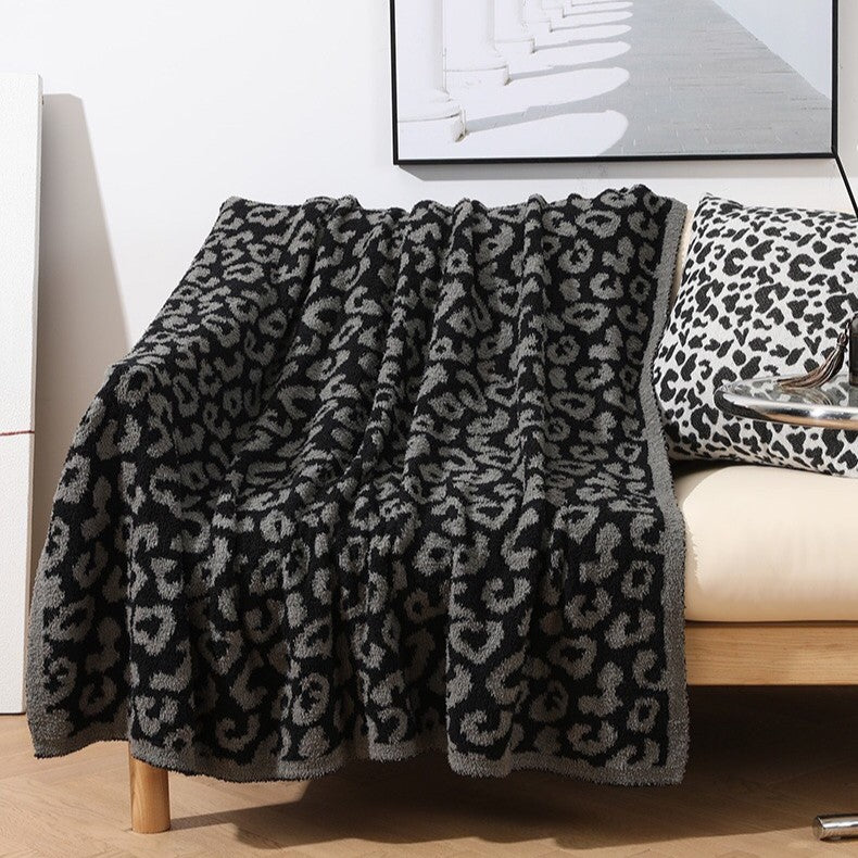 Add a touch of wild sophistication to your home with this thick and cozy leopard-print blanket.