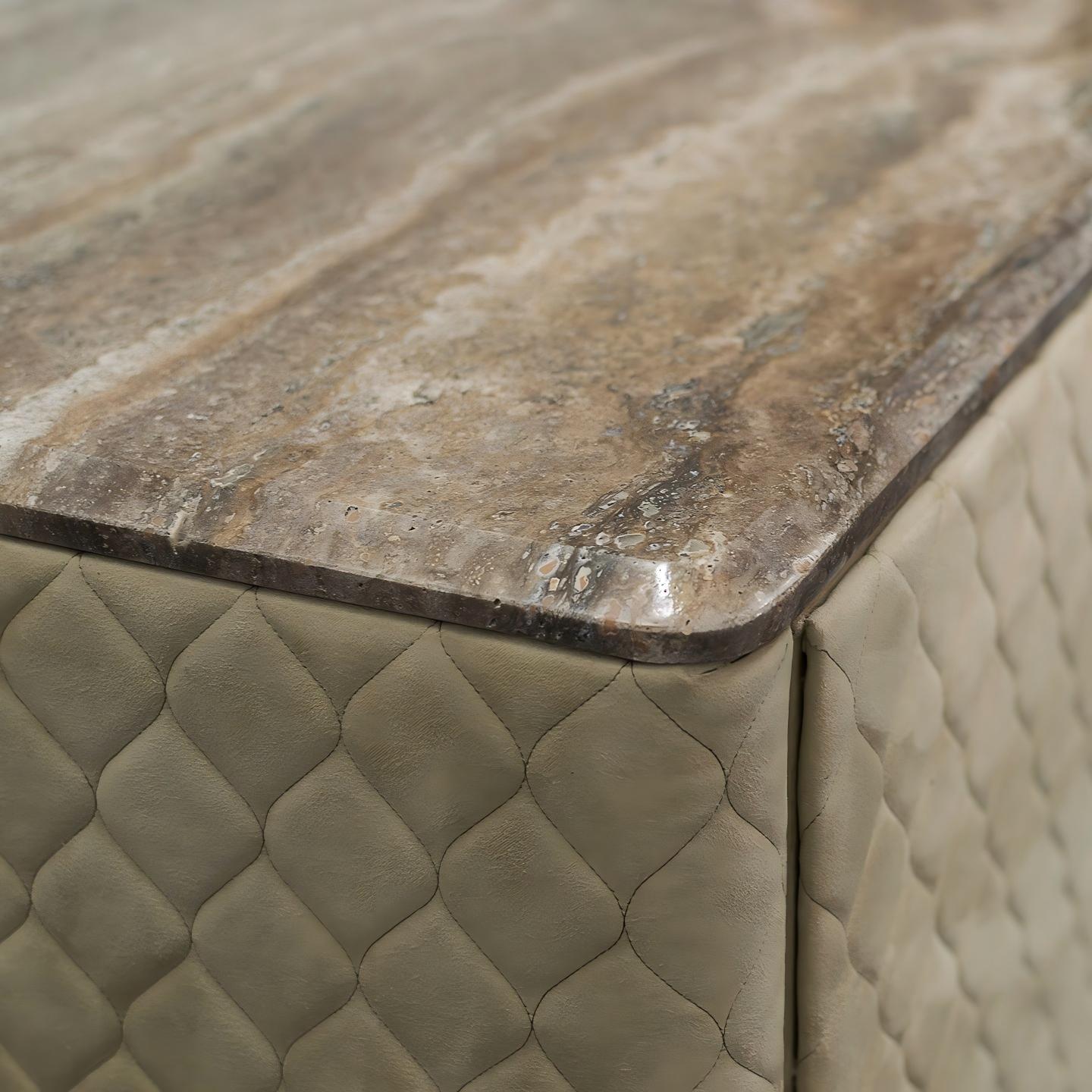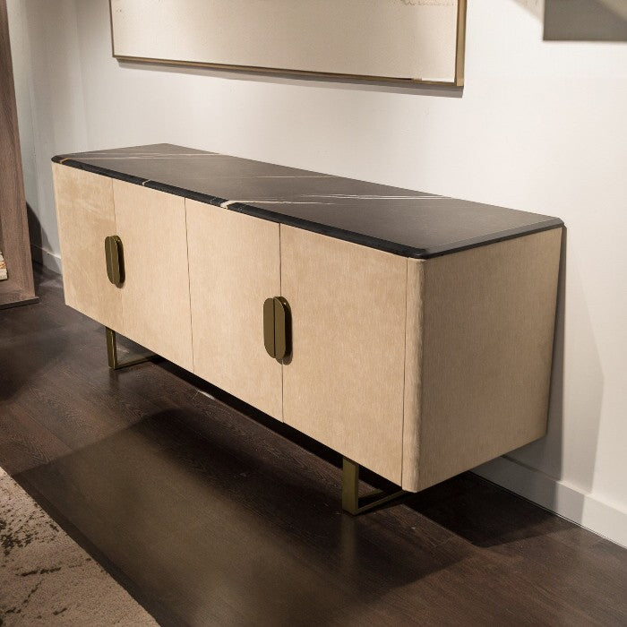 The Marilin buffet is a unique creation that remind us that objects are more than objects—they complement our lives and help us to create the stories of our lives—memories. Not only do furniture and objects play a functional role in our everyday lives. We don’t often think about how much our physical surroundings interplay with our everyday and our emotions. The stunning metal handles, the sexy upholstered sides, the gorgeous covers and the sophisticated marble top will not go unnoticed.