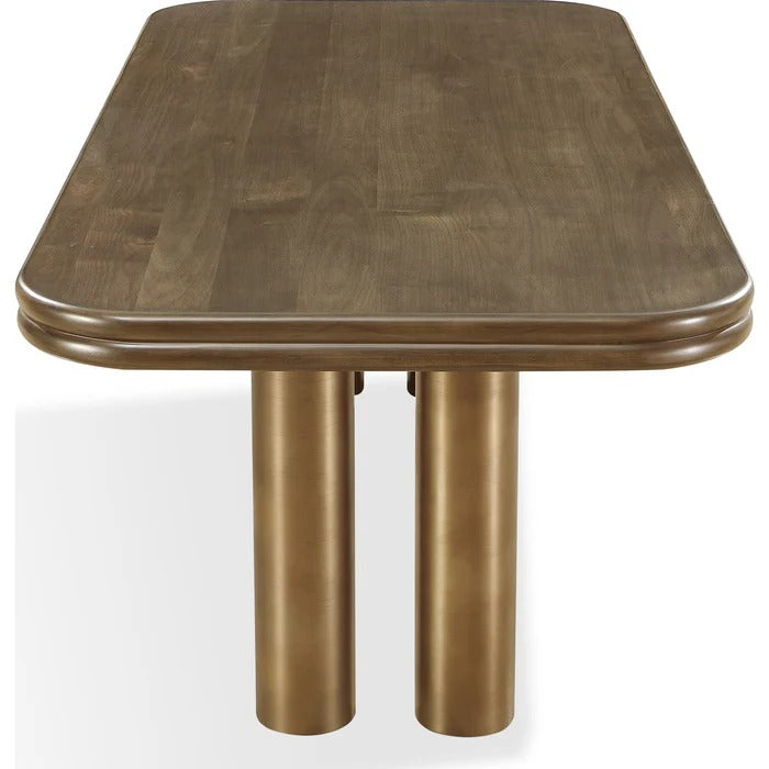 The Mataranka collection is a modern take on Global style, with soft, stacked half round and cylindrical geometry. Rich brown color tones accented with a lustrous brushed stainless steel complete the look.