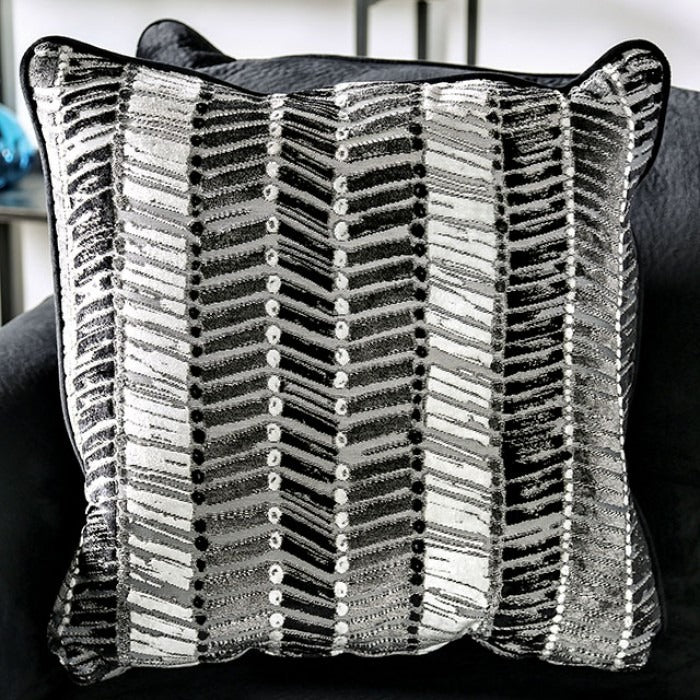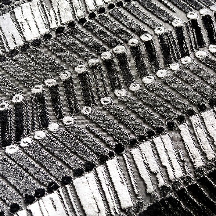 The abstract style can make any room special with such visual delights as rounded inner-edge arms, a discreet chaise, a U-shaped accent chair with arched armrests and a contrasting design ottoman that corresponds to loose pillows for a unifying theme. Microfiber faux crush velvet fabric and plush padding offer the 'sink right in' experience.
