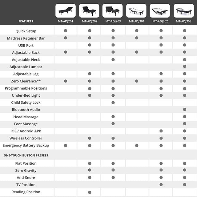 For ultimate versatility, our 300 Series are your best options! The Somnerside collection is constructed with top quality materials, with some of the most sought-after features in adjustable bed bases. It comes in multiple sizes with removable legs to fit most kinds of beds. Note: Feature sets may vary on different models and sizes.