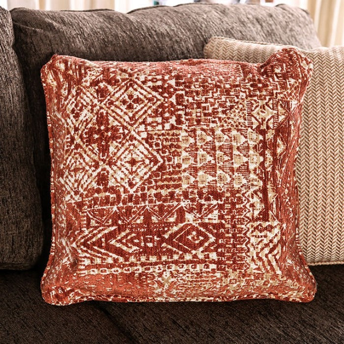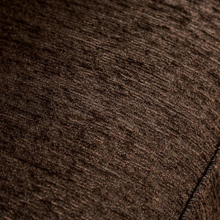 Nothing says home like a nice earth-tone piece. The warmth that this sectional brings may be attributed to its daring color theme: the base chenille fabric is in dark brown accentuated with pops of orange and rustic hues found in the throw pillows. But the inviting feeling is more than skin-deep; it also features classic elements of the English sofa pleated, curved low arms and traditional T-cushions which are known for the welcoming comfort they provide.